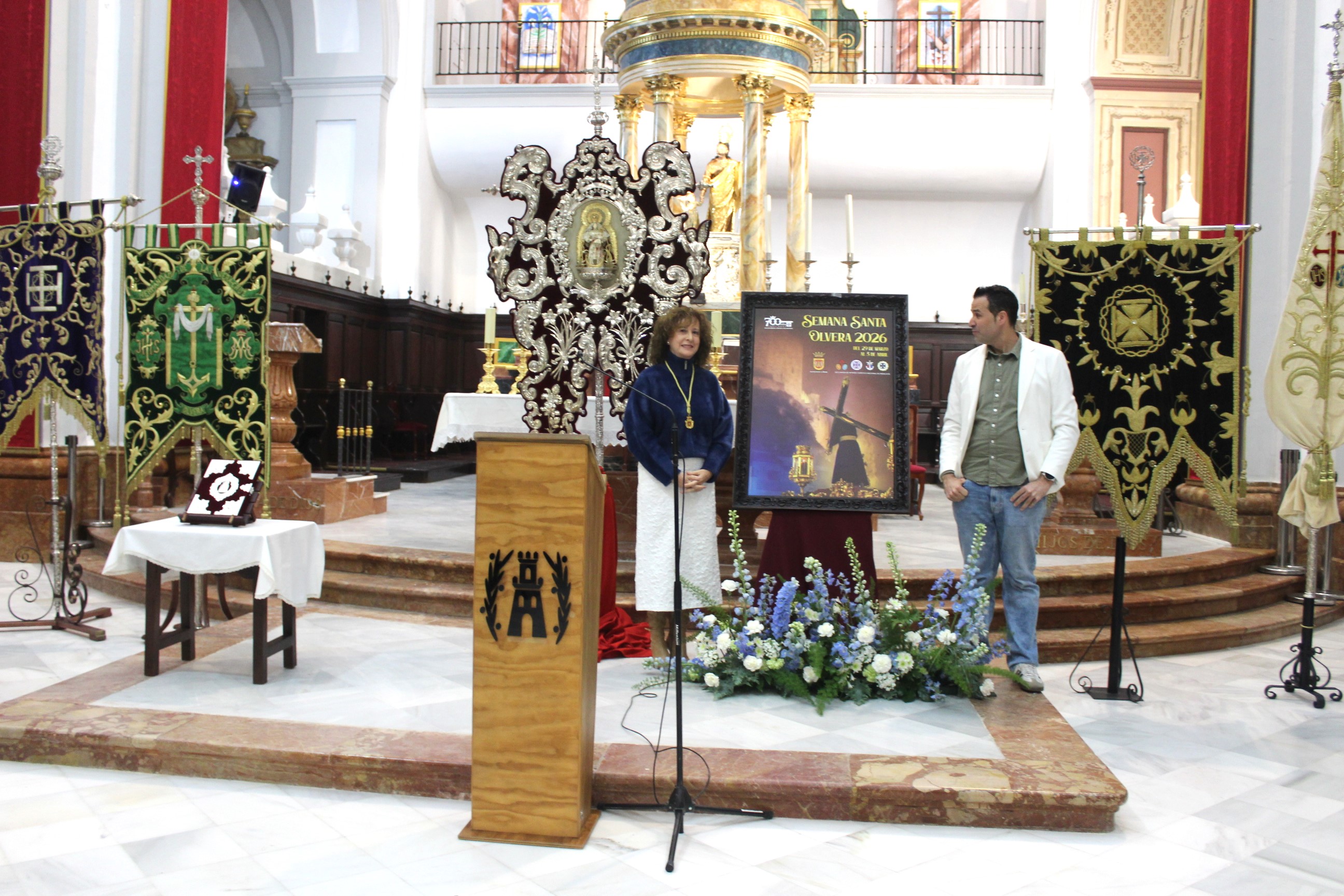 La Parroquia Nuestra Señora de la Encarnación acogió en el mediodía del domingo 8 de marzo la presentación del cartel anunciador de la Semana Santa 2026 del municipio de Olvera. El Ayuntamiento de Olvera en colaboración con las Hermandades, Cofradías y la Parroquia ha organizado un acto de presentación del Cartel oficial de la Semana Santa 2026, que anuncia la Semana Santa de Olvera, una fiesta declarada de Interés Turístico Nacional de Andalucía. El párroco de Olvera, José Arjona, fue el encargado de dar la bienvenida a los asistentes.
